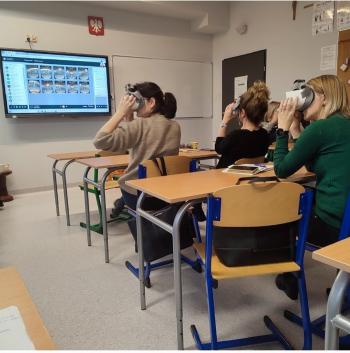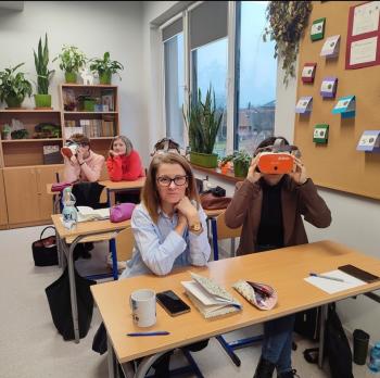 8 grudnia odbyło się w naszej szkole szkolenie dla rady pedagogicznej z obsługi okularów VR. Od tej pory zajęcia z wykorzystaniem okularów na stałe zagościły w naszej szkole na zajęciach z różnych przedmiotów. Sprzęt w ilości 12 szt. został zakupiony w ramach rządowego programu Laboratoria Przyszłości. Wirtualna rzeczywistość dostarcza uczniom niezapomnianych wrażeń.