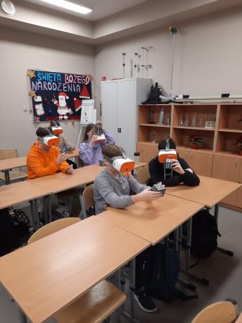 Pierwsze zajęcia z wykorzystaniem wirtualnej rzeczywistości odbyły się na zajęciach rozwijających z chemii. Uczniowie podglądali budowę atomów poszczególnych pierwiastków, przypominali sobie podstawowe elementy budowy atomów.