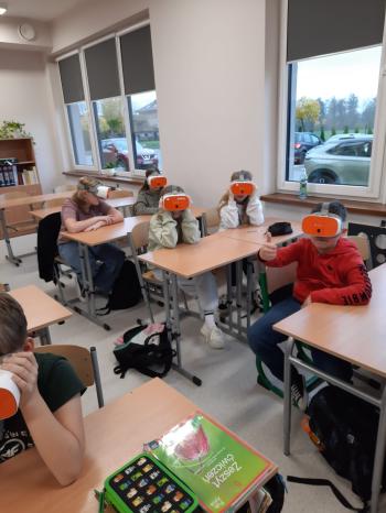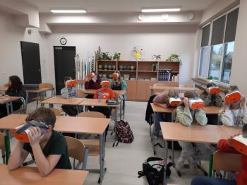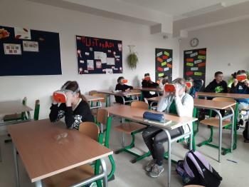 Klasy V a i V b oglądały komórki zwierzęce, roślinne i bakteryjne wykorzystując technologię VR. Wybrali się w podróż do wnętrza komórek, aby zgłębić swoją wiedzę na temat ich budowy. Byli zachwyceni takim utrwaleniem wiadomości.