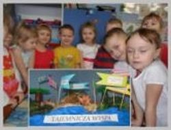 W okresie od stycznia do czerwca 2016 r. w ramach realizowanej innowacji pedagogicznej „Tajemnicza Wyspa” dzieci z oddziału Żabek uczestniczyły w 11 zajęciach badawczych. Przedszkolacy „podróżowali” na wyspę różnymi środkami lokomocji: narty, kolejka górska, łyżwy, deska snowboardowa, samochód, autobus, tramwaj, rower, deskorolka, motor, kajak.
