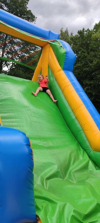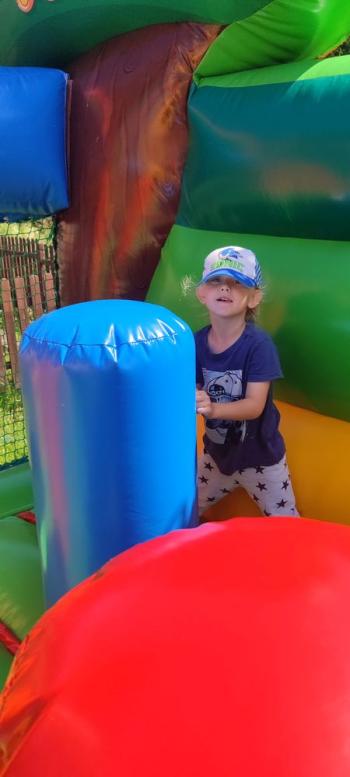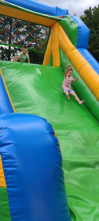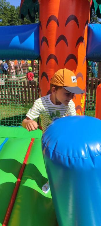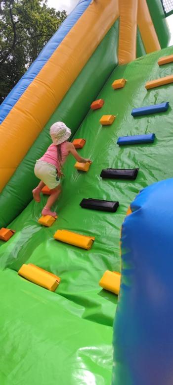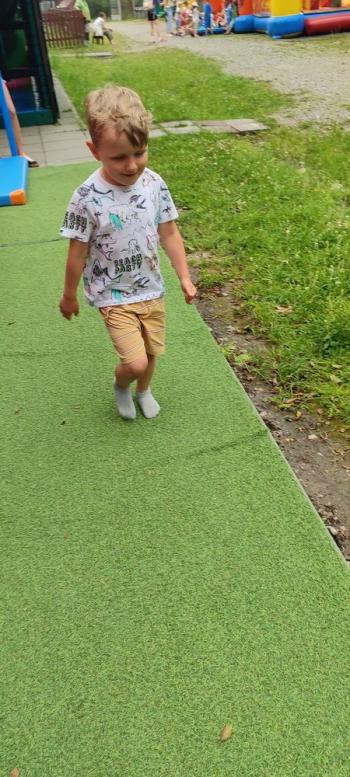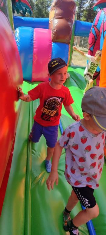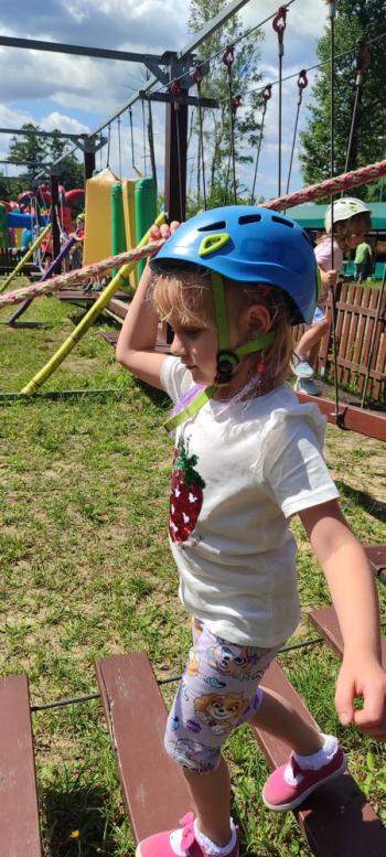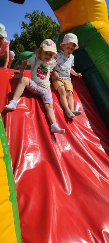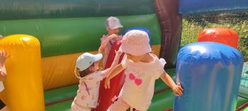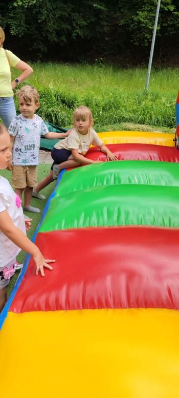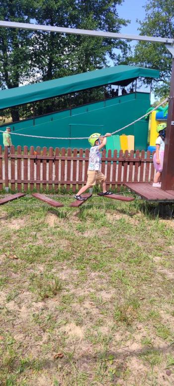 Nie zabrakło również czasu na swobodną zabawę – były zabawy na dmuchanych placach zabaw, zabawy integracyjne oraz pyszny piknik w otoczeniu przyrody. To był dzień pełen śmiechu, ruchu i pozytywnych emocji, który na długo pozostanie w pamięci naszych „Tygrysków”.