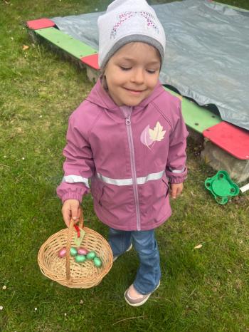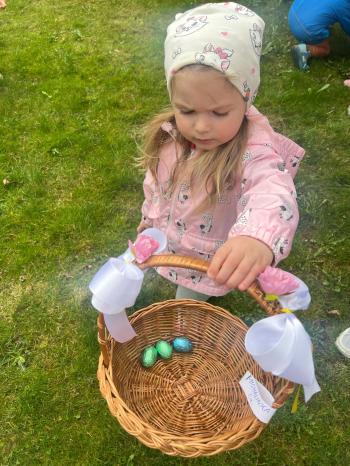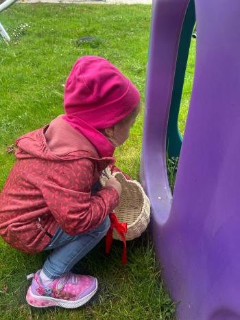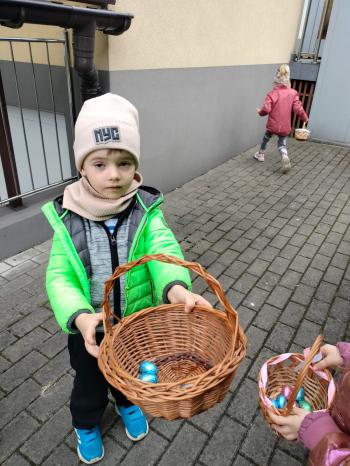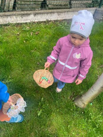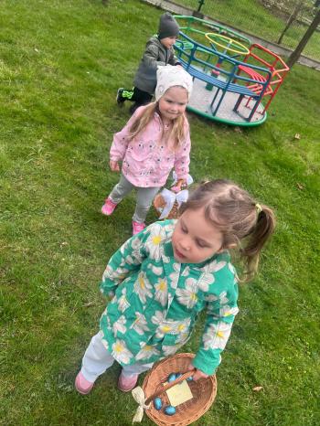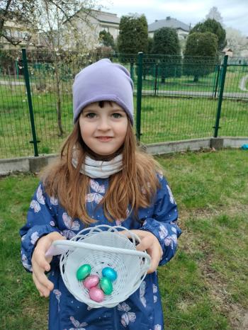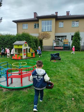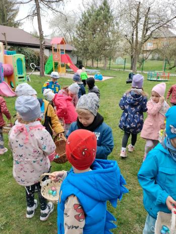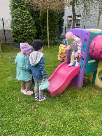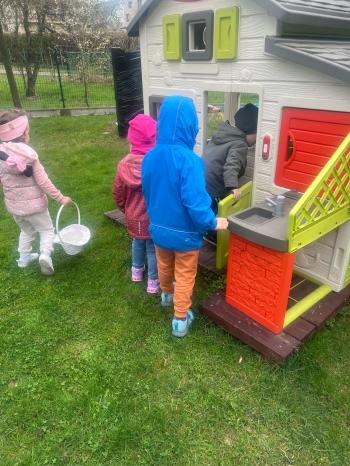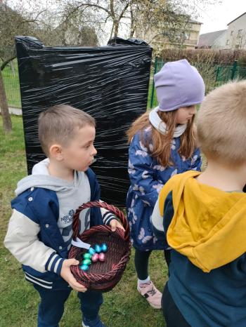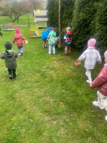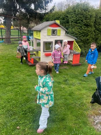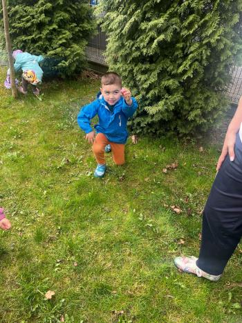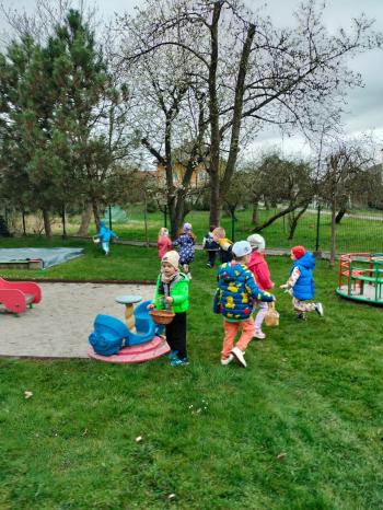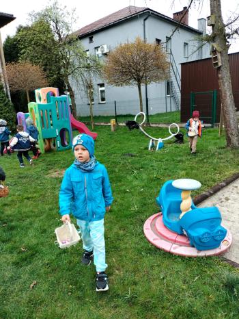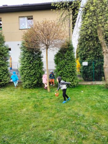 Nasze przedszkolaki również postanowiły świetnie się bawić w trakcie szukania jajeczek ukrytych przez Zajączka w ogrodzie przedszkolnym.
