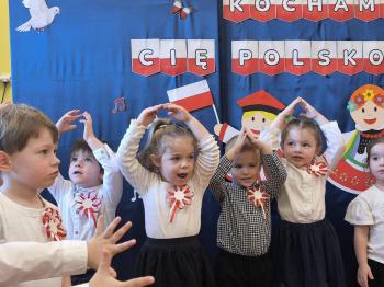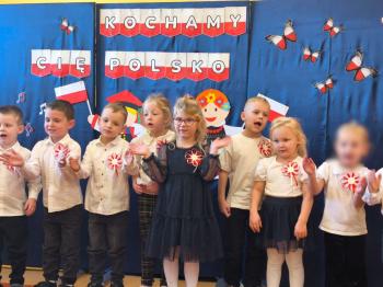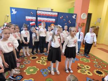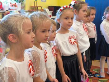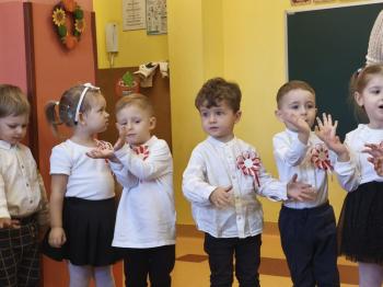 W piątek 7 listopada, jak każdego roku nasze przedszkole dołączyło do akcji „Szkoła do hymnu.” Z okazji zbliżającego się Święta Niepodległości, wszystkie dzieci zebrały się w jednej sali, aby o symbolicznej godzinie 11:11 uroczyście odśpiewać hymn narodowy. Następnie, każda grupa wykonała przygotowane krótkie programy artystyczne, które dawały wyraz pięknej patriotycznej postawy przedszkolaków i potrafiły wzruszyć do łez.