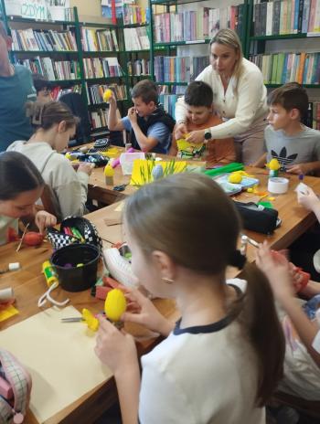 14 kwietnia klasa IV odwiedziła Gminną Biblioteką Publiczną we Włosienicy. Spotkanie z Panią Elą wprowadziło wszystkich w świąteczny nastrój.