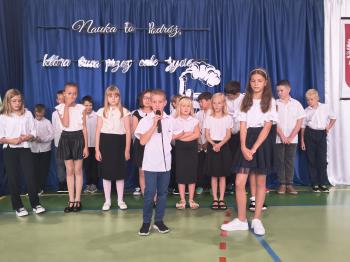Pierwszego września w naszej szkole odbyła się akademia z okazji rozpoczęcia roku szkolnego. Na sali gimnastycznej zgromadzili się uczniowie, nauczyciele, rodzice oraz pracownicy naszej szkoły. Uroczystość rozpoczęła się przemówieniem pani dyrektor. Następnie uczniowie klasy czwartej zaprezentowali program artystyczny, w którym szczególną uwagę poświęcili tegorocznym pierwszakom.